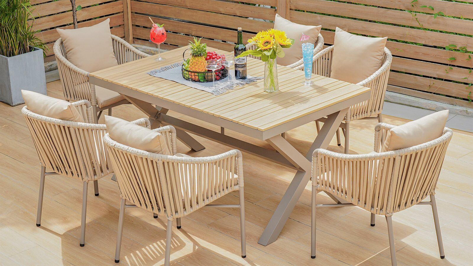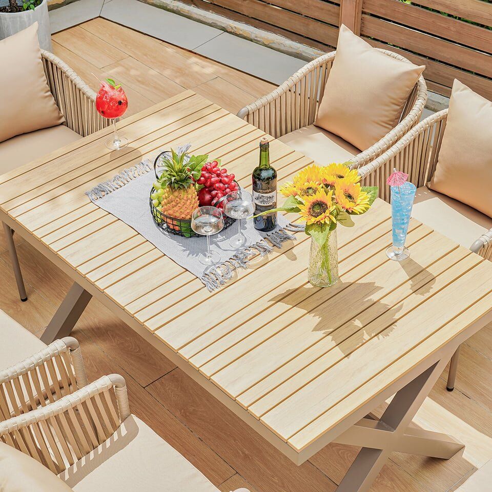 Elevate your outdoor experience with the Velvet Dawn Outdoor Table Set, a masterpiece that blends luxurious design with unmatched durability. Perfectly crafted for luxury lifestyle enthusiasts, this set redefines sophistication with its modern aesthetics and functional design. Whether hosting an intimate family dinner or a lively outdoor soirée, the Velvet Dawn Outdoor Table Set delivers a seamless balance of style and comfort. Its soft, neutral hues and meticulous craftsmanship make it a versatile centerpiece for any outdoor space, from lush gardens to sleek urban patios.